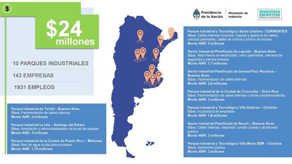 Hemos entregado los RENPI, que son los registros, los certificados para que quienes están gestionando la apertura de un parque industrial puedan hacerlo y también hemos entregado a varios parques industriales, ya abiertos, aportes no reintegrables para mejorar la infraestructura. Vamos a llegar, a fin de año, a 260 parques, o sea que el nuevo gobierno va a tener nuevos 260 parques industriales y va a tener la certificación de otros tantos, así que estamos realmente muy contentos.