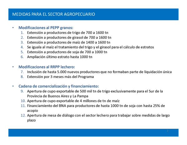 Estas medidas conforman una política de segmentación, diferenciando a los productores según su volumen y producción, para productores pequeños, los más afectados por la crisis, esto es aún mejor que la eliminación de las retenciones, como proponen algunos.