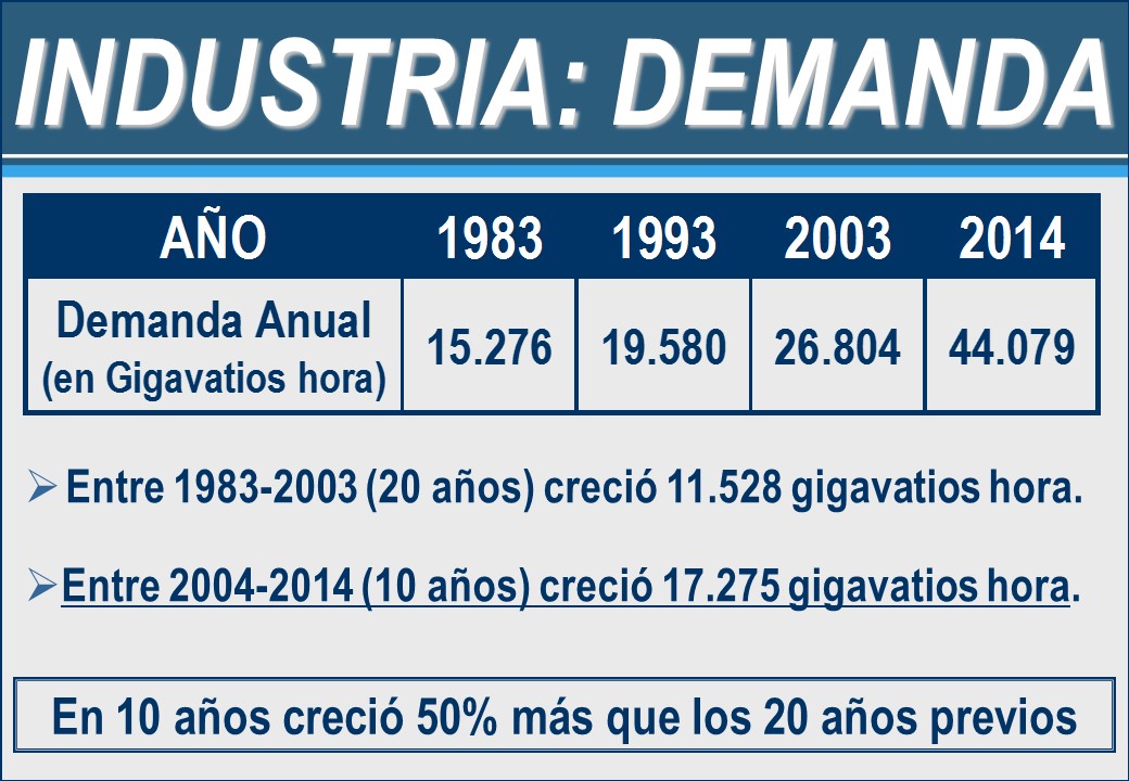 Lo mismo el tema de la industria, ese es el general, vamos a la industria que es la que le interesa a ustedes. Fíjense creció, en diez años, 50 por ciento más la demanda industrial, que en los 20 años previos.