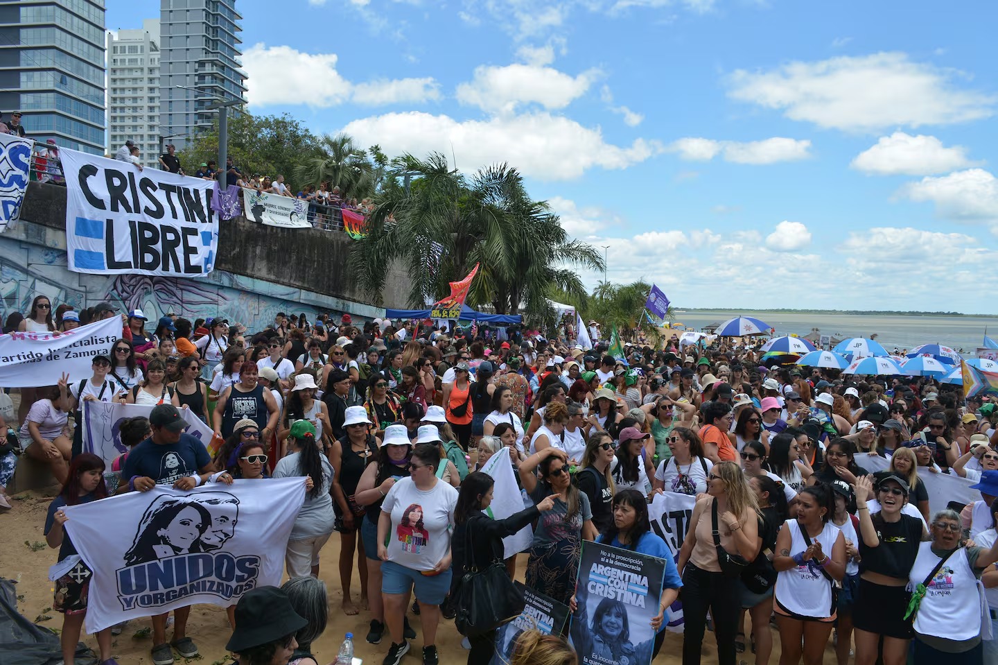 Hola! Cómo están todas? Quiero agradecerles a todas las compañeras que se encuentran reunidas en esa plaza en la provincia de Corrientes: la última provincia que visité antes de que me encarcelaran y proscribieran injustamente. Un saludo a todos los correntinos y las correntinas.