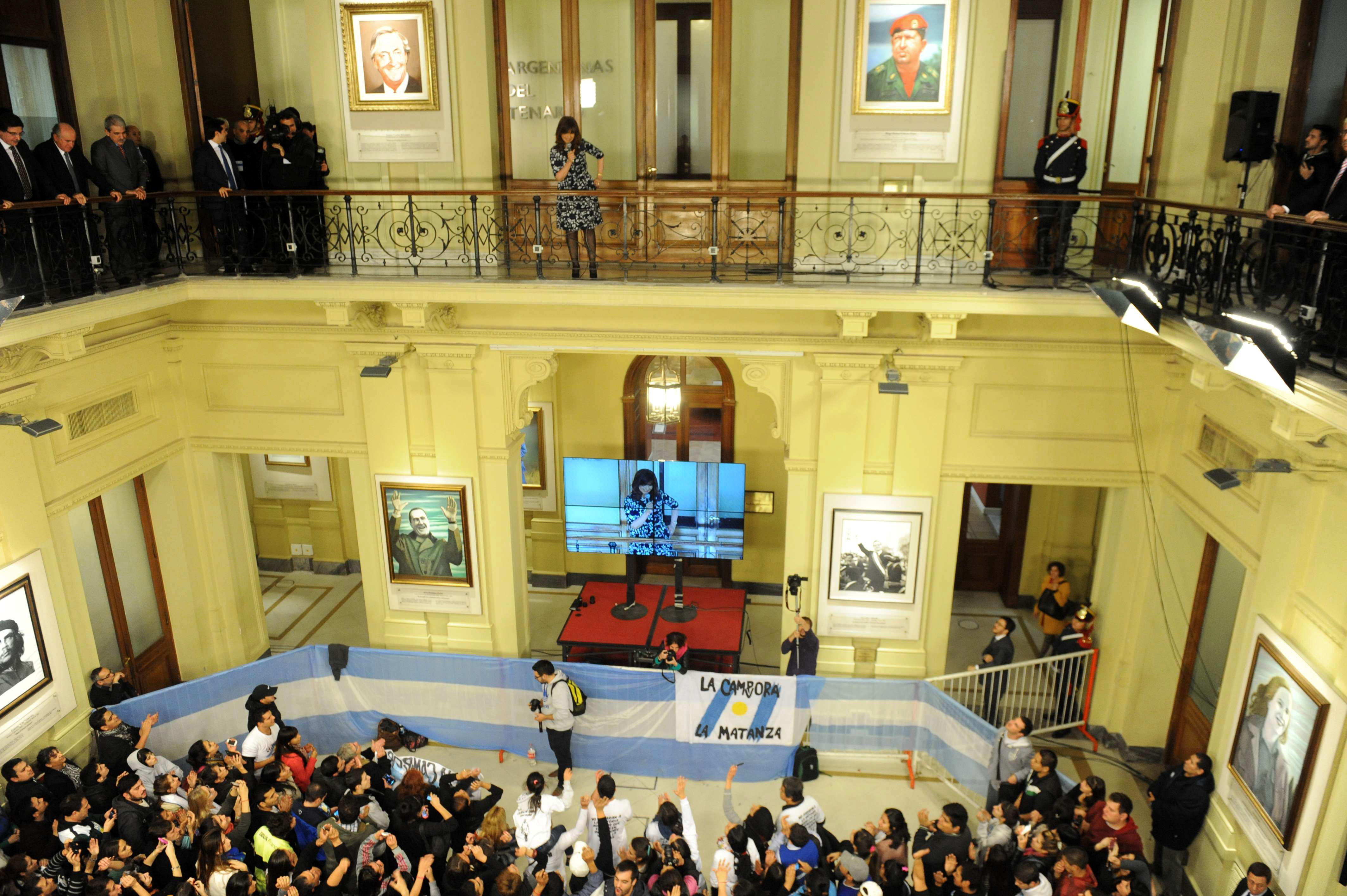 Palabras de la Presidenta a la militancia, en la Galería de los Patriotas Latinoamericanos, luego del acto de anuncios e inauguraciones de obras en Casa Rosada. Miércoles 01 de julio de 2015.
